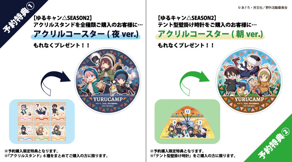 予約購入特典!『ゆるキャンSEASON2 アクリルコースター』をもれなくプレゼント!